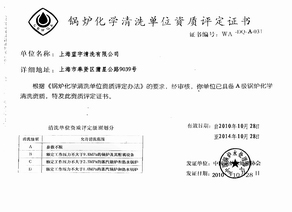 | 锅炉清洗A级资质 | 安全施工许可证 | 清洗一级资质证书 | ISO14000环境管理体系认证 |