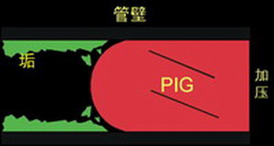 | PIG是由特殊聚氨酯材料制成的形如子弹的清洗材料。PIG清洗时,须选用直径必待习惯到直径略大的PIG,一般过盈量10%-15%。在压力介质推动下PIG在管内运行,过盈量的存在,使得PIG与管道内表面紧密挤压。在摩擦力的作用下,PIG将附着在馆内壁上的污垢除下,同时,PIG尾部的推动介质经过PIG圆周与管壁之间的环隙到达PIG头部,形成小流量高速度的环隙射流。他不仅能冲开已除下的堆积在PIG前端的污垢,而且起到冷却、润滑的作用。PIG管道清洗技术特别适用于长距离输送流体的管道和生产上允许停车清洗的管道,以及一些无法采取化学清洗的管道。PIG本身根据材质的不同,其运行距离有长有短。 PIG的特点: 1、无论90度弯管、T型管、异型管,PIG都可以通过; 2、PIG清洗管道只要一个入口,一个出口,施工简便; 3、PIG清洗管道工作时间短,不需要特殊工作场所;其收缩性强、通过性好、强度高、规格尺寸齐全; 4、各种工业和生活用水、污水管线、城市煤气管道,工厂用各种工艺管道、油田输油、气管线等,均可采用PIG清洗。 PIG系统 : PIG系统PIG系统由PIG、PIG发射器、接收器、相关的检测系统,动力源及推动介质组。 |